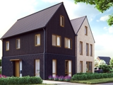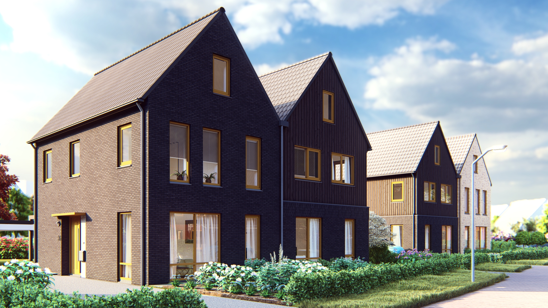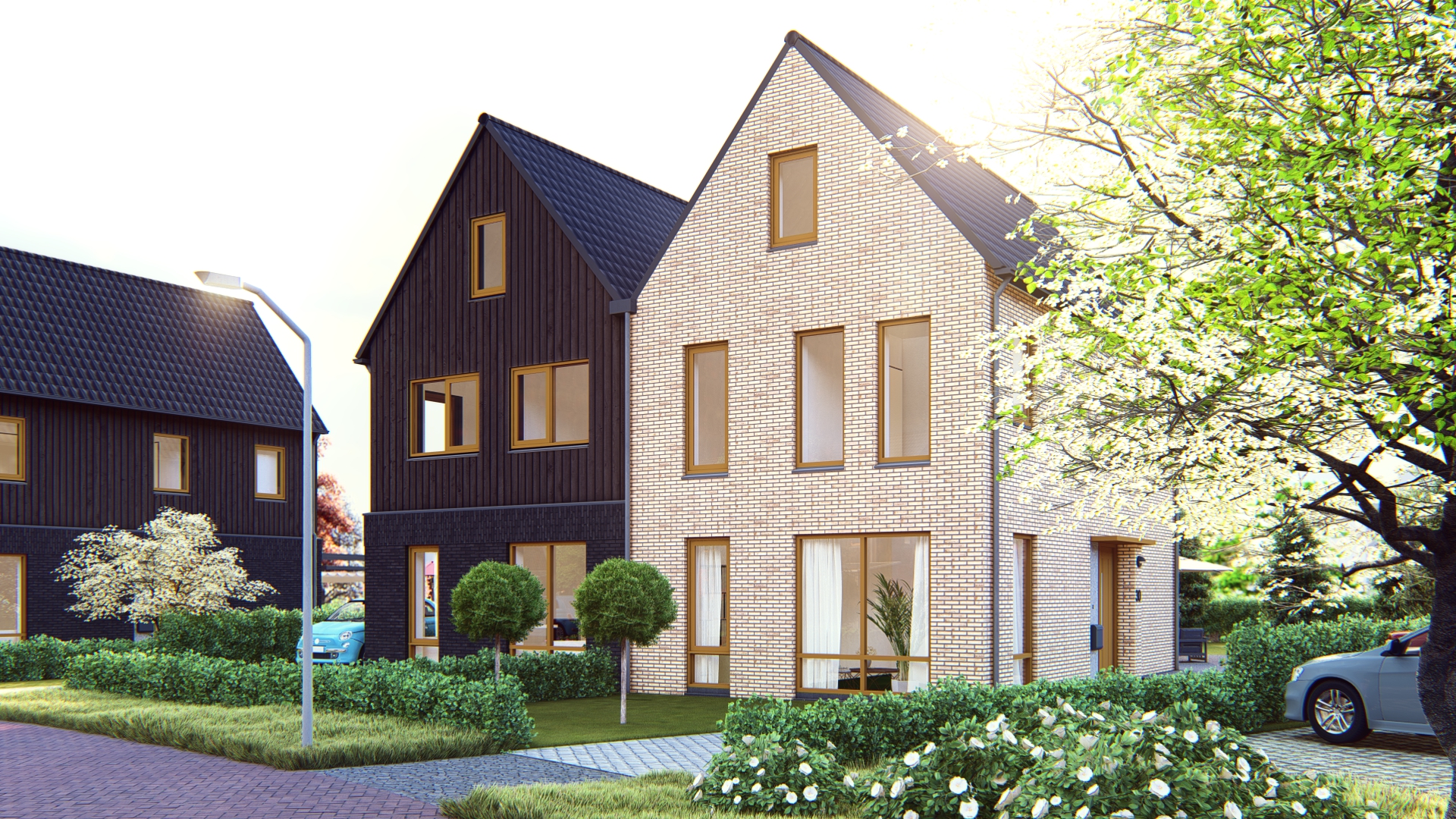 Alle halfvrijstaande woningen krijgen een gevarieerde combinatie van baksteen en houtengevelbekleding. De antracietkleurige houten gevels worden afgewisseld met licht, rood en donker metselwerk. Deze combinatie zorgt voor zowel diversiteit en harmonie in het straatbeeld.